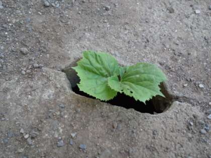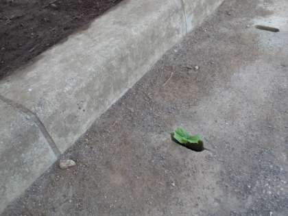 雨水溝から、へちまが発芽してきました。きっと種子が落ちてしまったようです。(6月5日)