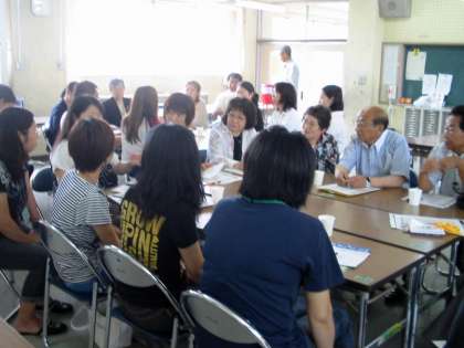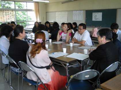 授業参観後、視聴覚室で意見交換会が行われました。(6月16日)