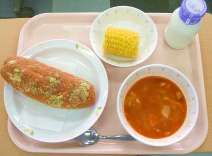 *うぐいす揚げパン *ミネストローネ *ゆでとうもろこし *牛乳