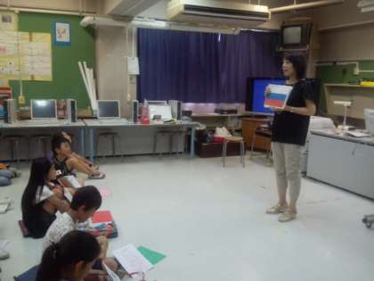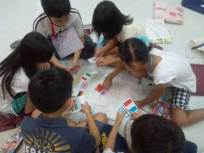 一学期最後の授業は、国の名前あてクイズをしました。国の特徴から国を当てる楽しいゲームをしました。(7月18日)