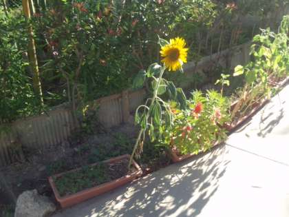 正門付近のヒマワリは太陽の光を浴びて大きくなっています。(7月22日)