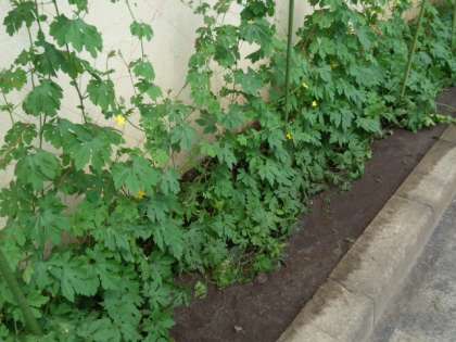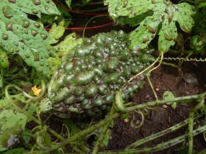 毎日、5年生が水やりをしています。小さなゴーヤが実りました。(7月23日)