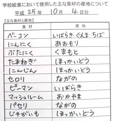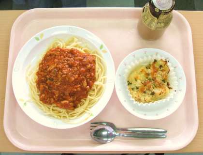*スパゲティーミートソース *ポテトのクリーム焼き *コーヒー牛乳