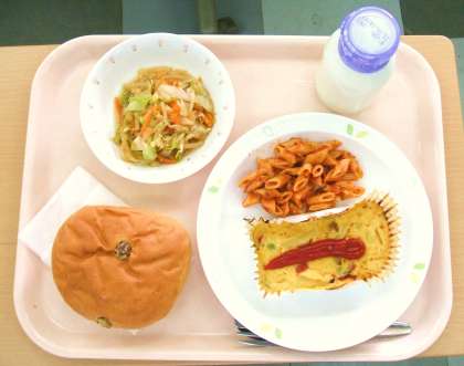 *ぶどうパン *スペイン風オムレツ *ペンネアラビアータ *ごまドレサラダ *牛乳