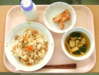 *吹き寄せごはん *いかのカリン揚げ *すまし汁 *牛乳