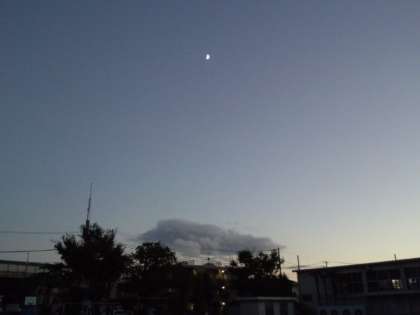 夕方、南の空に月が見えています。だんだん満月へと変化していきます。(10月13日)