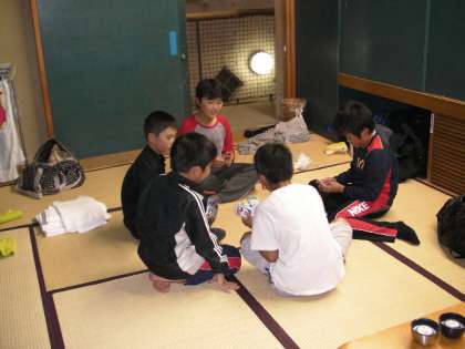 部屋の中では、班の友だちと楽しくゲームをして過ごしています。(10月16日18時30分)