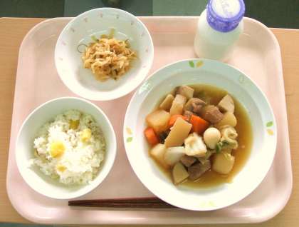 *さつまいもごはん *豚肉と大根のうま煮 *切干大根のはりはり漬け *牛乳