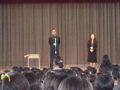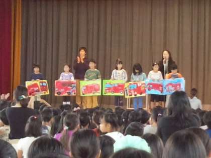 児童朝会 公開日 2013/10/21 更新日 2013/10/21 その他の教育活動 昨日の雨で、校庭が柔らかいので体育館で行いました。消防車写生の表彰の後、教育実習生のあいさつがありました。(10月21日)