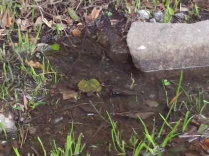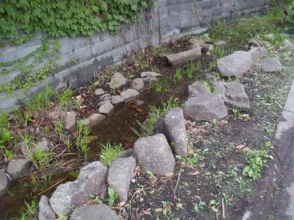 先日の台風一家が去った後、正門前の掘付近から湧き水が出ています。(10月22日)