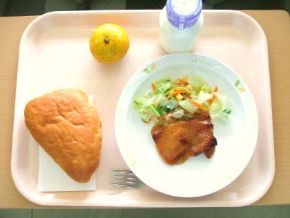 *ミルクパン *チキンソテー *コールスローサラダ *くだもの(みかん) *牛乳