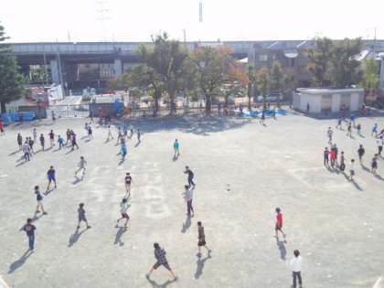 穏やかな陽気になりました。校庭で、子どもたちがのびのびと遊んでいます。(11月5日)