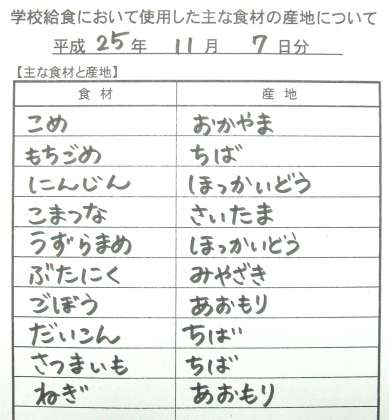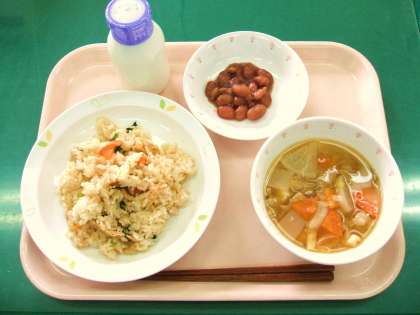 *子ぎつねごはん *うずら豆の煮豆 *とん汁 *牛乳