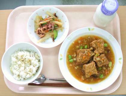 *雑穀ごはん *生揚げのそぼろあんかけ *カミカミサラダ *牛乳