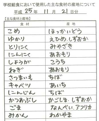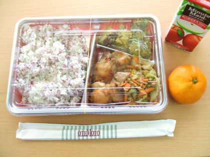 11月21日 交流お弁当給食 公開日 2013/11/21 更新日 2013/11/21 その他の教育活動 *ゆかりごはん *鶏の照り焼き *さつまいもの煮ころがし *キャベツのおかか炒め *くだもの(みかん) *りんごジュース 今日は給食室で詰めたお弁当を持って、体育館・屋上・校庭で、交流学年と一緒に お弁当をいただきました。 お天気になってよかったです!