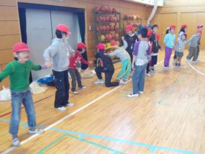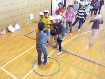 交流給食の後、体育館や校庭や屋上に別れてゲームをして交流を深めました。(11月21日)
