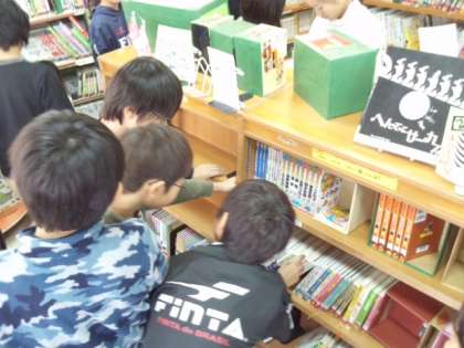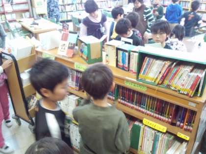 今週は、冬休みの貸し出し週間です。図書の時間を利用して図書室の本を選びました。(12月11日)