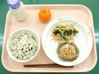 *わかめとじゃこのごはん *ジャンボしゅうまい *塩ナムル *牛乳