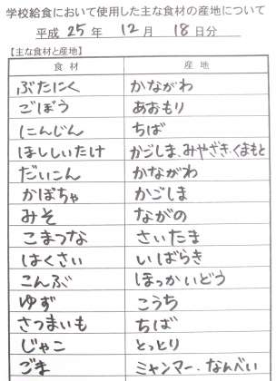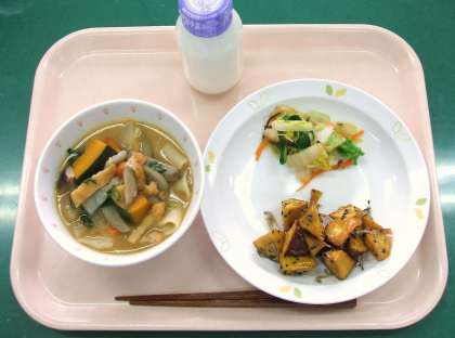 *ほうとう *じゃこ入り大学いも *白菜のゆず風味 *牛乳