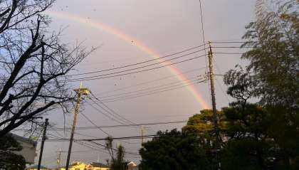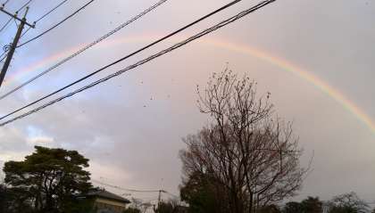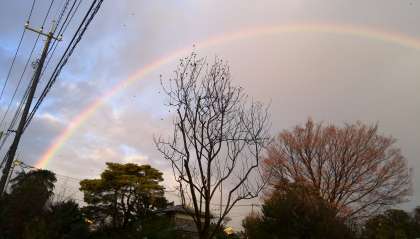朝7時、西北の空に大きくてきれいな虹が出ました。(12月20日)