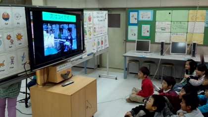 学校に関係するニュース番組を作り、班ごとに発表しました。(12月24日)