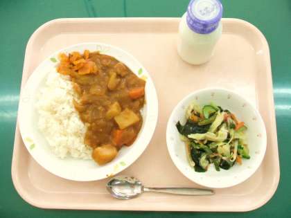 *カレーライス *福神漬 *かいそうサラダ *牛乳