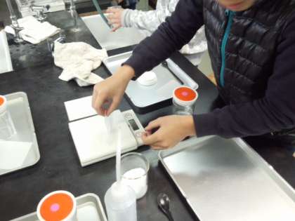 食塩が水にとける量を予想し、実際に実験をして確かめていました。(1月12日)