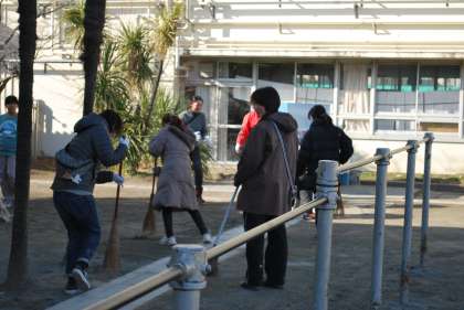 校庭の側溝清掃 1月13日 公開日 2014/01/16 更新日 2014/01/16 その他の教育活動 地域運営委員会の活動の一つとして、運営委員の方のお声かけで、地域のサッカーチームのコーチや保護者の方々、子どもたちが校庭の側溝清掃をしてくださいました。大雨が降ると校庭に水があふれてしまうのですが、これで安心。本当にありがとうございました。お疲れ様でした。