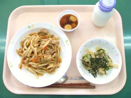 *焼きうどん *冬野菜のサラダ *みたらしだんご *牛乳