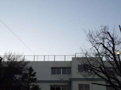 朝方見える三日月が、東に寄って見えます。(1月28日)
