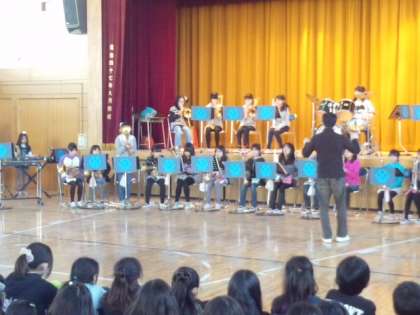 中休みに、体育館で金管クラブの発表会がありました。ソロパートがありました。(2月5日)