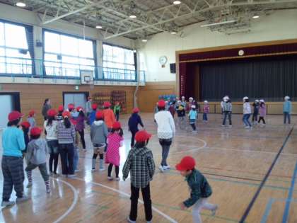 5年生と交流活動を行いました。一緒にドッチボールをしました。(2月7日)