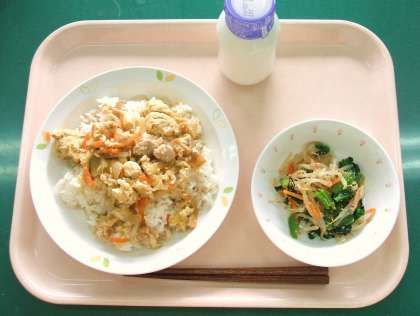 *親子丼 *野菜のごま和え *牛乳