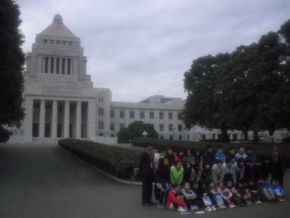 国会議事堂を背にして記念撮影です。元気に帰りました。(2月13日)