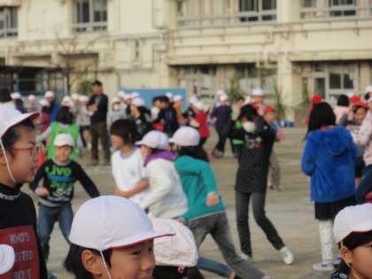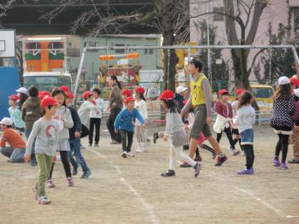 大雪のため、ぬかるんでいるところがあり、狭い中での鬼ごっことなりましたが、なんとかけがなく無事に行うことができました。