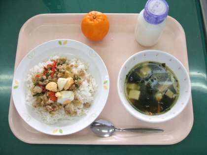 *ガパオライス *わかめと豆腐の中華スープ *くだもの(ぽんかん) *牛乳