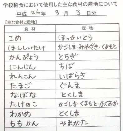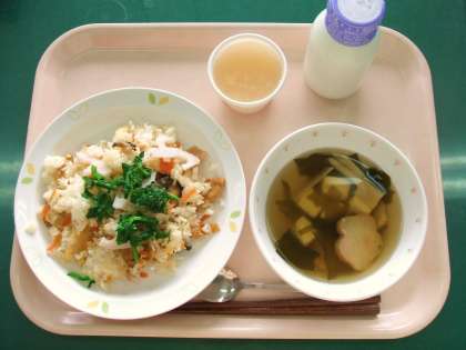 *菜の花ちらしずし *すまし汁 *ももゼリー *牛乳