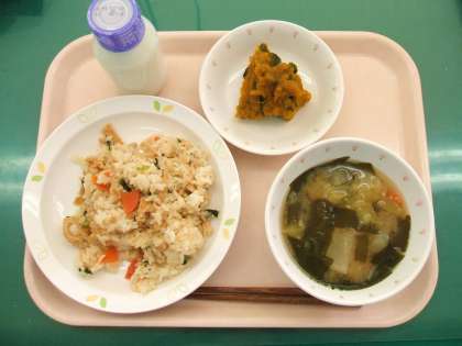 *子ぎつねごはん *かぼちゃの含め煮 *みそ汁 *牛乳