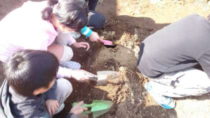 校長先生に教えていただき種芋を植えました。(3月17日)