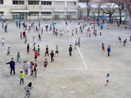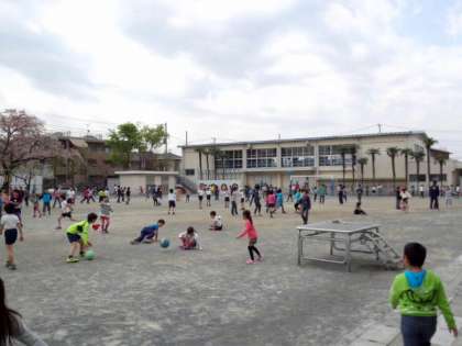 暖かくなり、校庭で元気に遊んでいます。(4月9日)