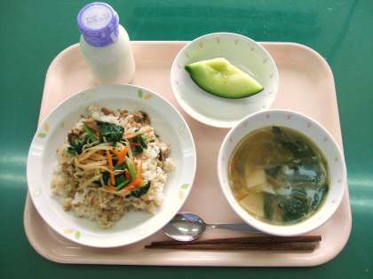 *ビビンバ *ワンタンスープ *くだもの(メロン) *牛乳