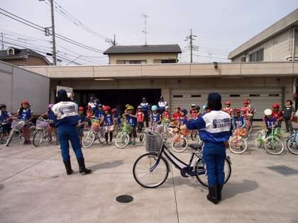 喜多見小の子どもたちは3年生になると、交通安全センターで実地訓練をすることができます。この教室(講習)が終わると、修了証が与えられ、一人で自転車に乗ることができるようなります。