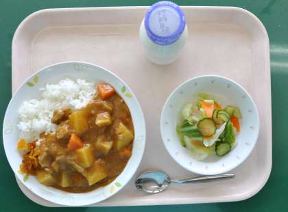 *カレーライス *福神漬 *野菜の甘酢かけ *牛乳