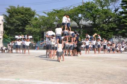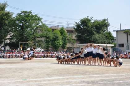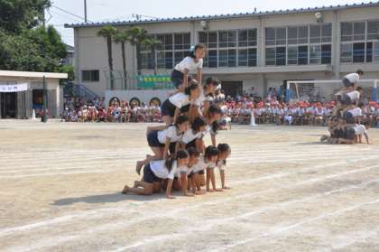 6年生の組体操は、地球の誕生をテーマにしました。今までの練習の成果を出し切って演技をしました。(5月31日)
