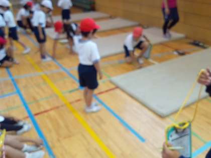 6年生に教えてもらいながらスポーツテストをしました。(6月6日)