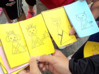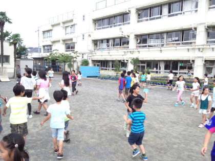 校庭で七夕集会をしました。織り姫と彦星を見つけるゲームでした。(6月26日)