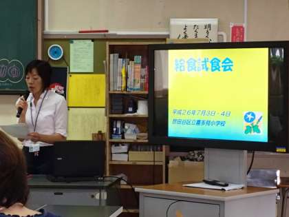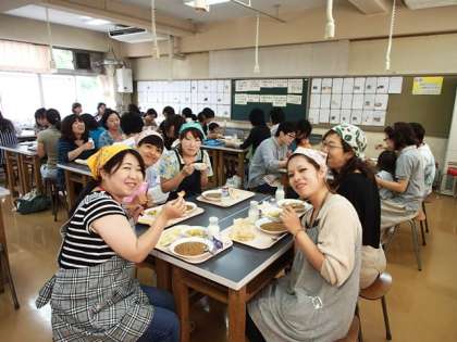 本校の給食について、理解を深めていただいた後はいよいよ試食。「とてもいい味」と大好評でした。そして、毎日こんなにおいしい給食を食べている子どもたちは幸せ、とも。