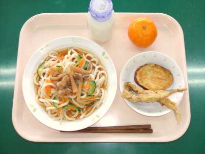 *冷やしうどん *さつまいもとししゃもの天ぷら *冷凍みかん *牛乳