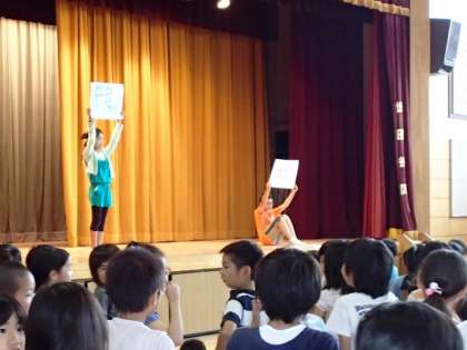 だれが通るでしょう集会 7月10日 公開日 2014/07/13 更新日 2014/07/13 その他の教育活動 “だれが通るでしょう集会”がありました。 扮装した先生が通ります。2択で答えていました。 全問正解した人はいたのでしょうか。