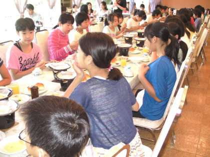 昨日のハイキングで疲れを見せていた子ども達も、朝食をたくさん食べていました。(7月25日7時)